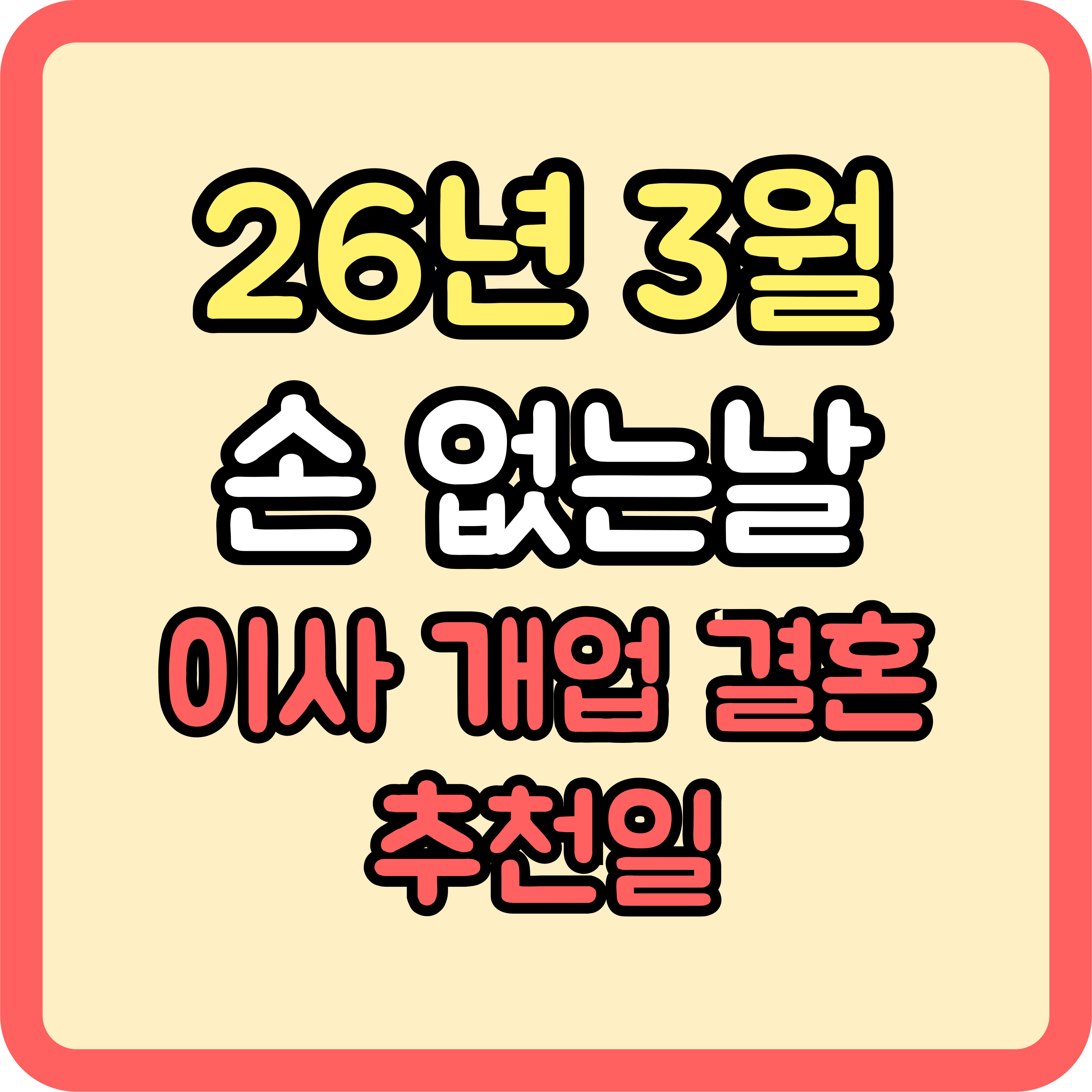 2026년 3월 손 없는 날 달력과 함께 이사, 결혼, 개업에 좋은 길일을 정리했습니다. 손 없는 날 예약 꿀팁까지 한눈에 확인해보세요!
